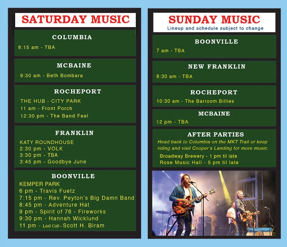 Ben Miller Band - SHEL - Dirtfoot - We Live in Public - Old Salt Union - Burn Circus - The Flood Brothers - Dead Bed Bad - Boone County Tick Pickers - Mercer & Johnson - Kay Brothers - Tanner Bechtel - White Trash Blues Revival - Ghost River Revue - Sunshine Mammas - Dirt Leg Benders