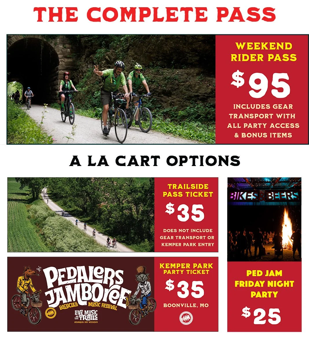 Trailside usage fees charged by Columbia Parks and Rec and Missouri State Parks as well as the credit card processing fees are included in the ticket price. Rider packet postage is also included in ticket fee. Tickets on-sale now! Click here to reserve today